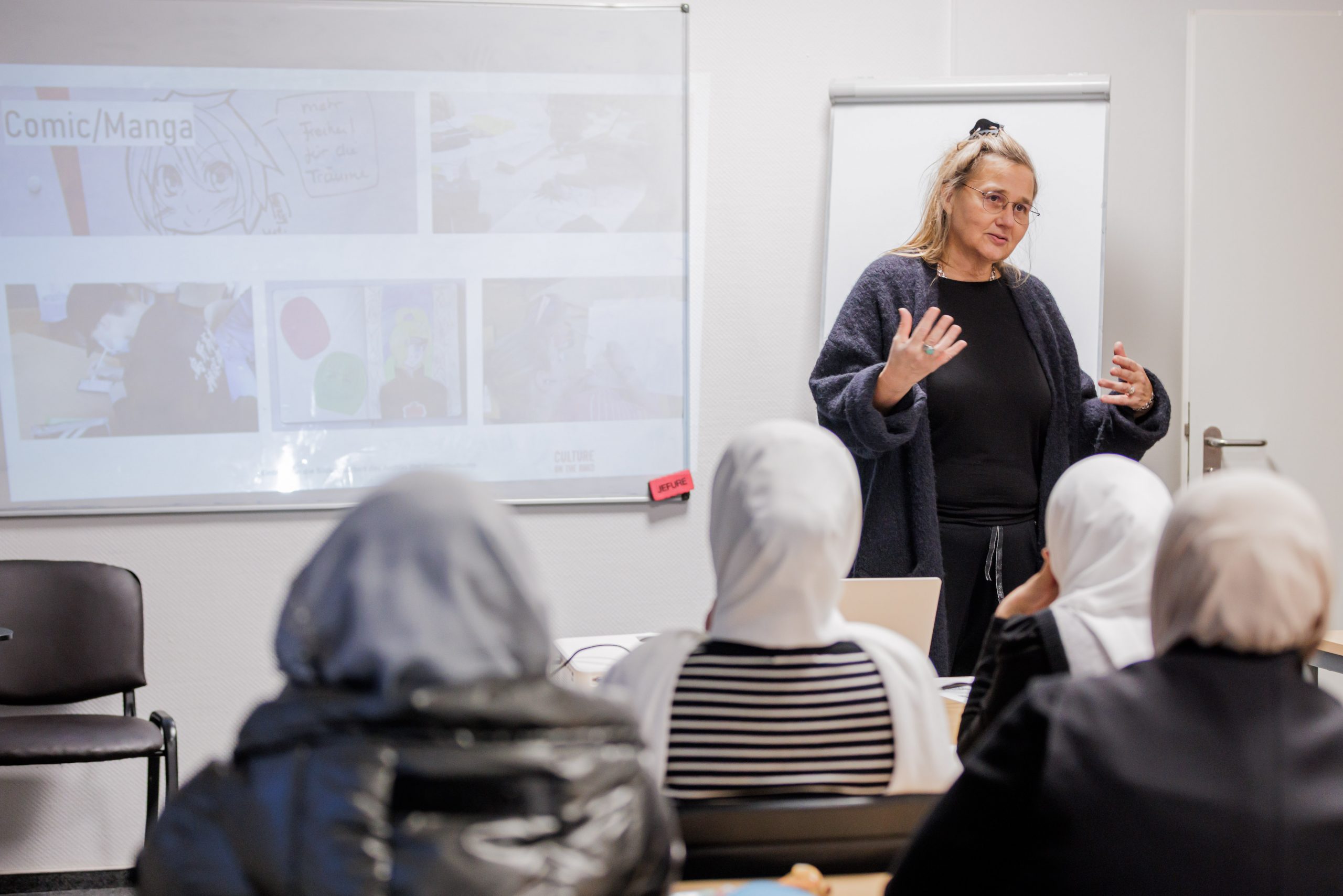 Geleitet wurde der Workshop von Gabriele Rohmann, Sozialwissenschaftlerin, Journalistin und Co-Leiterin des Archiv der Jugendkulturen. Seit über 25 Jahren arbeitet sie an der Schnittstelle von Jugend-, Pop- und Subkulturen, politischer Bildung, Extremismusprävention und Medienpädagogik und berät Bildungs- und Kultureinrichtungen ebenso wie Behörden. Zweiter Referent war Thomas Riedmann, Sozial- und Kulturanthropologe und angehender Lehrer, der seit vielen Jahren als Referent der politischen Bildung tätig ist, unter anderem mit einem Schwerpunkt auf antisemitismuskritischer Bildungsarbeit.